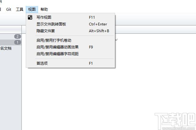 9、点击视图按钮弹出写作视图功能操作列表,该列表可以进行写作视图进行编辑,可以启用或者进行打字机等功能